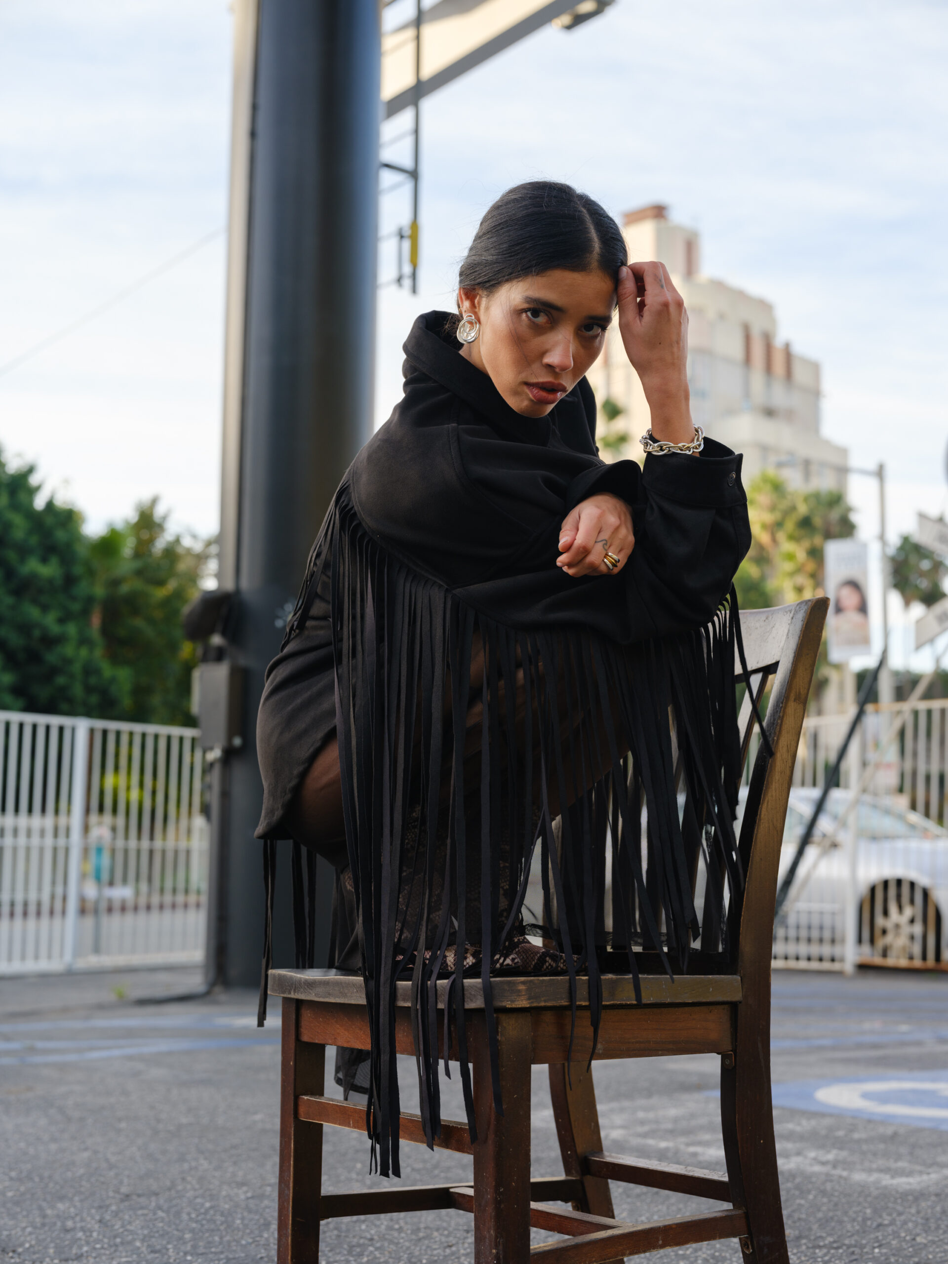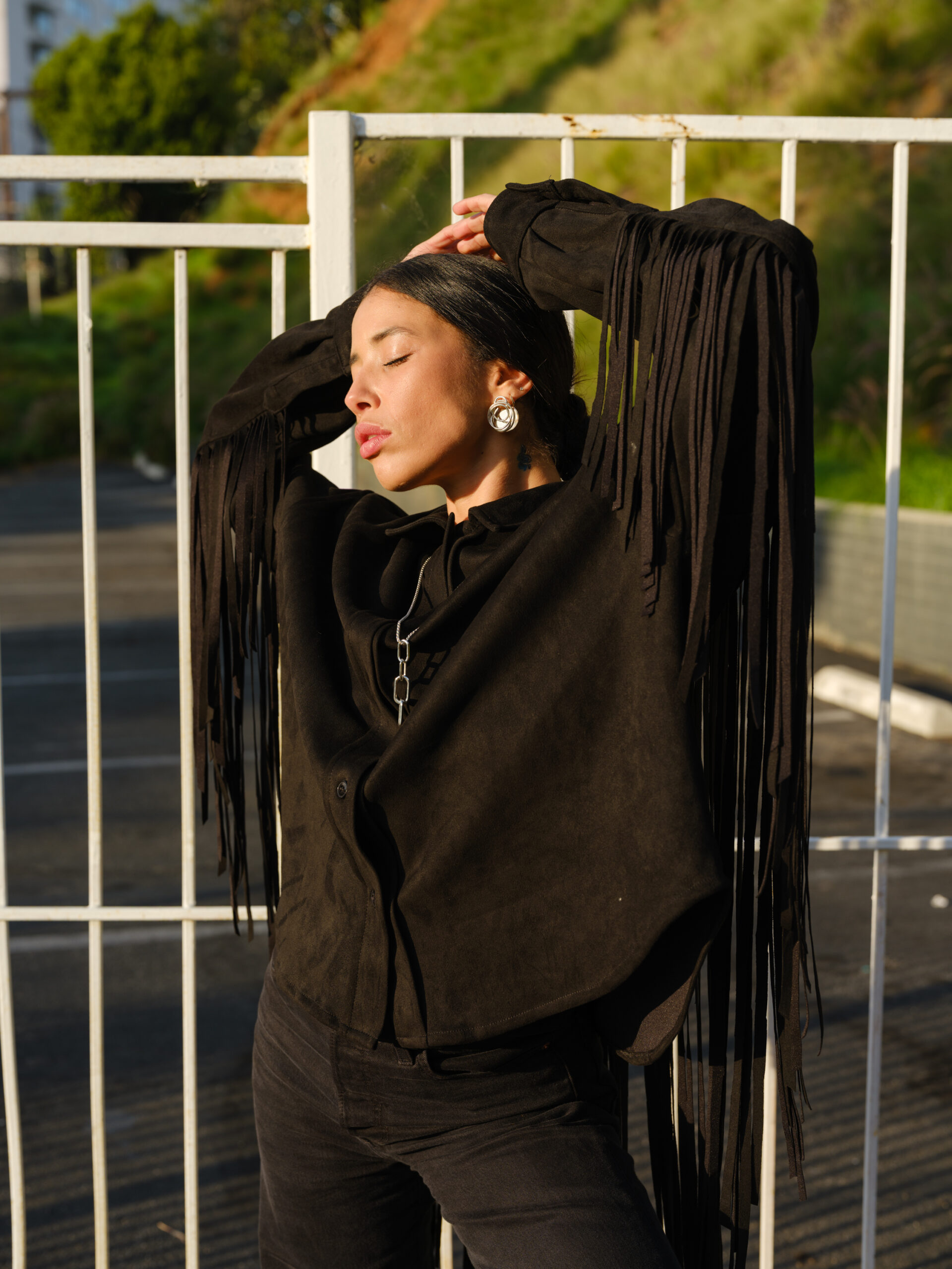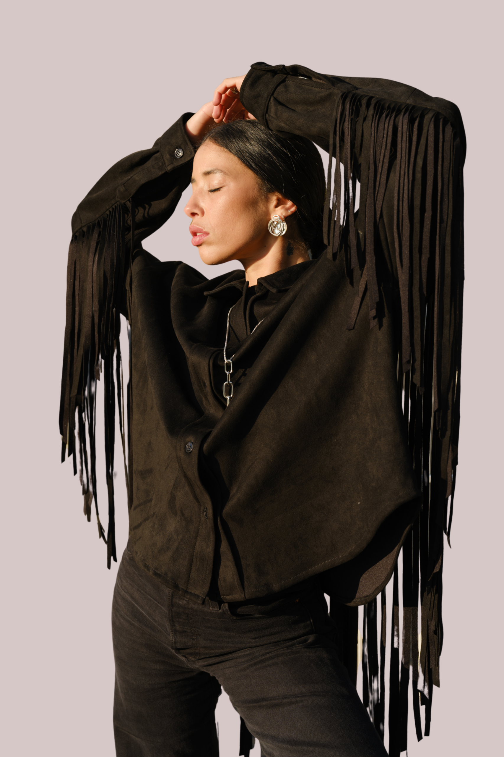 - Détails : Veste en daim, Frange longue